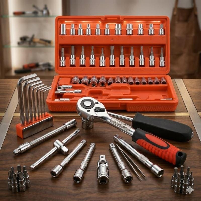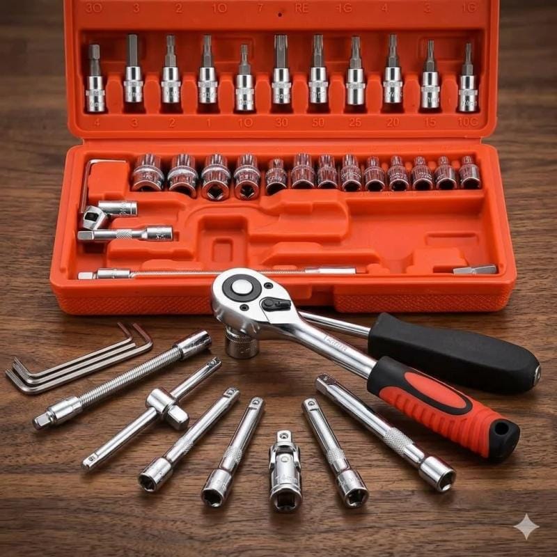 🏎️ طقم الصيانة الميكانيكية المتكامل (46 قطعة): رفيقك الموثوق في كل الظروف