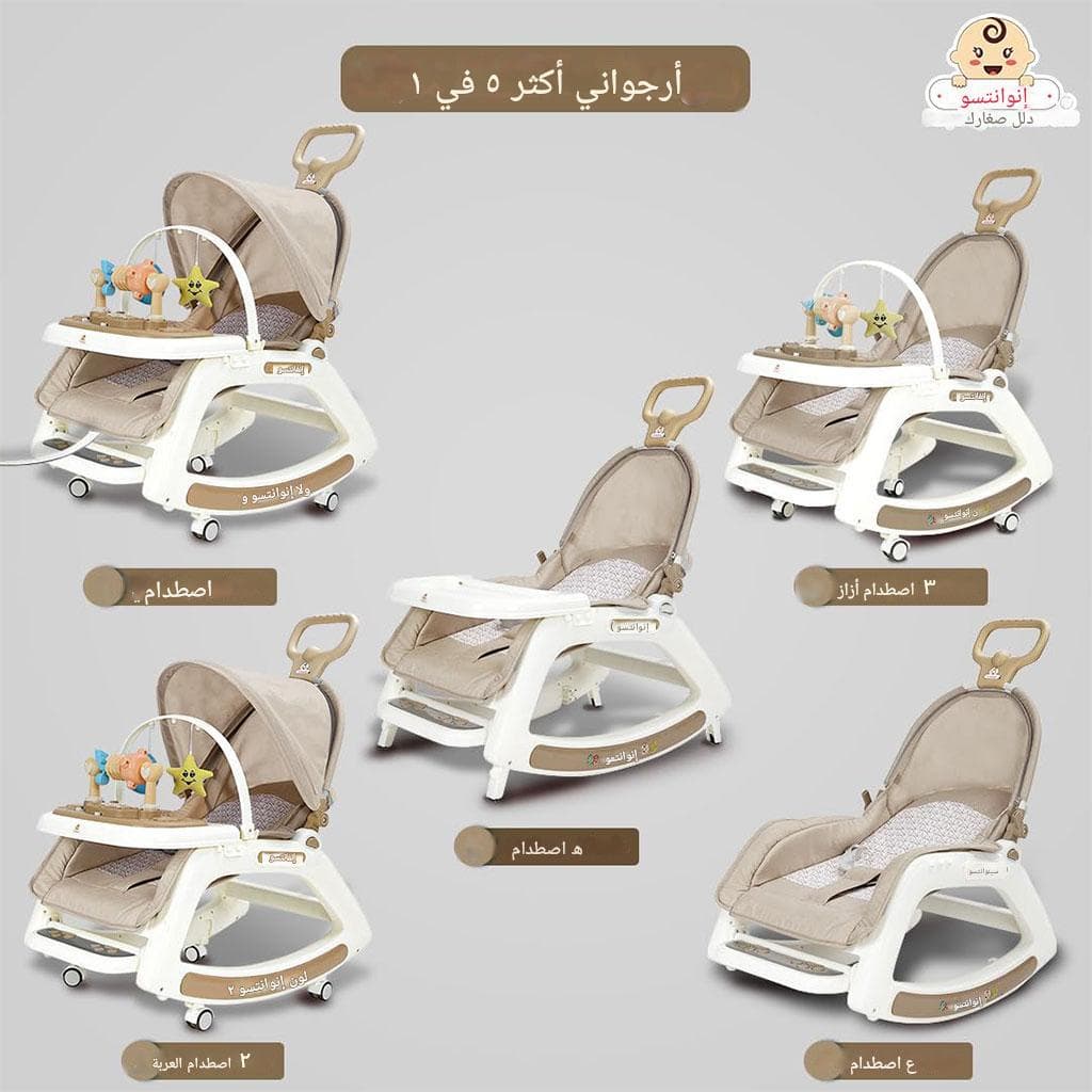 كرسي الأطفال هذا يجمع بين 5 أوضاع مختلفة لتلبية كل احتياجات طفلك :
