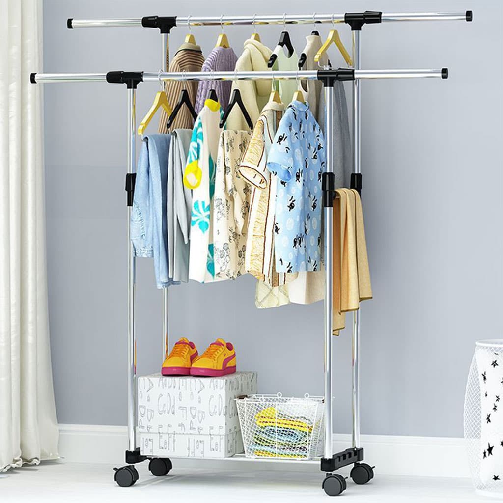 - 📏 قابل للتمديد: القضيب العلوي يمتد من 90 سم إلى 150 سم ليمنحك مساحة أكبر لتعليق الملابس.