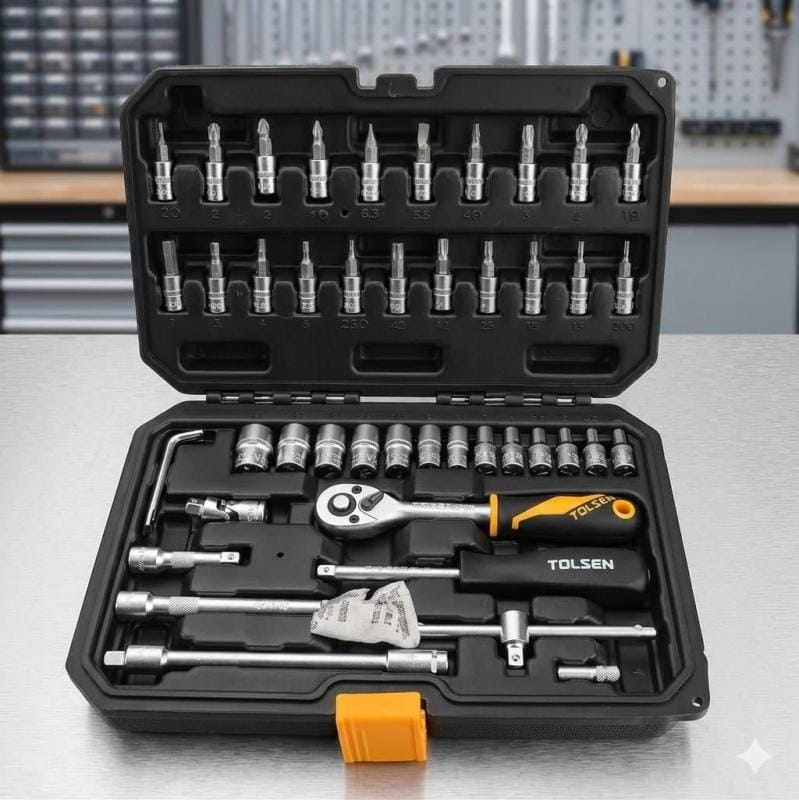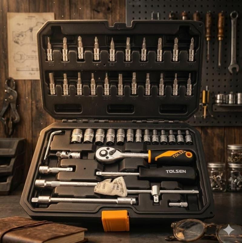 الخلاصة: طقم TOLSEN 46Pcs ليس مجرد مجموعة مفاتيح عادية، بل هو معيار للجودة والاعتمادية. استثمر في “الصح” وودّع الأدوات التي تنكسر عند أول ضغط.