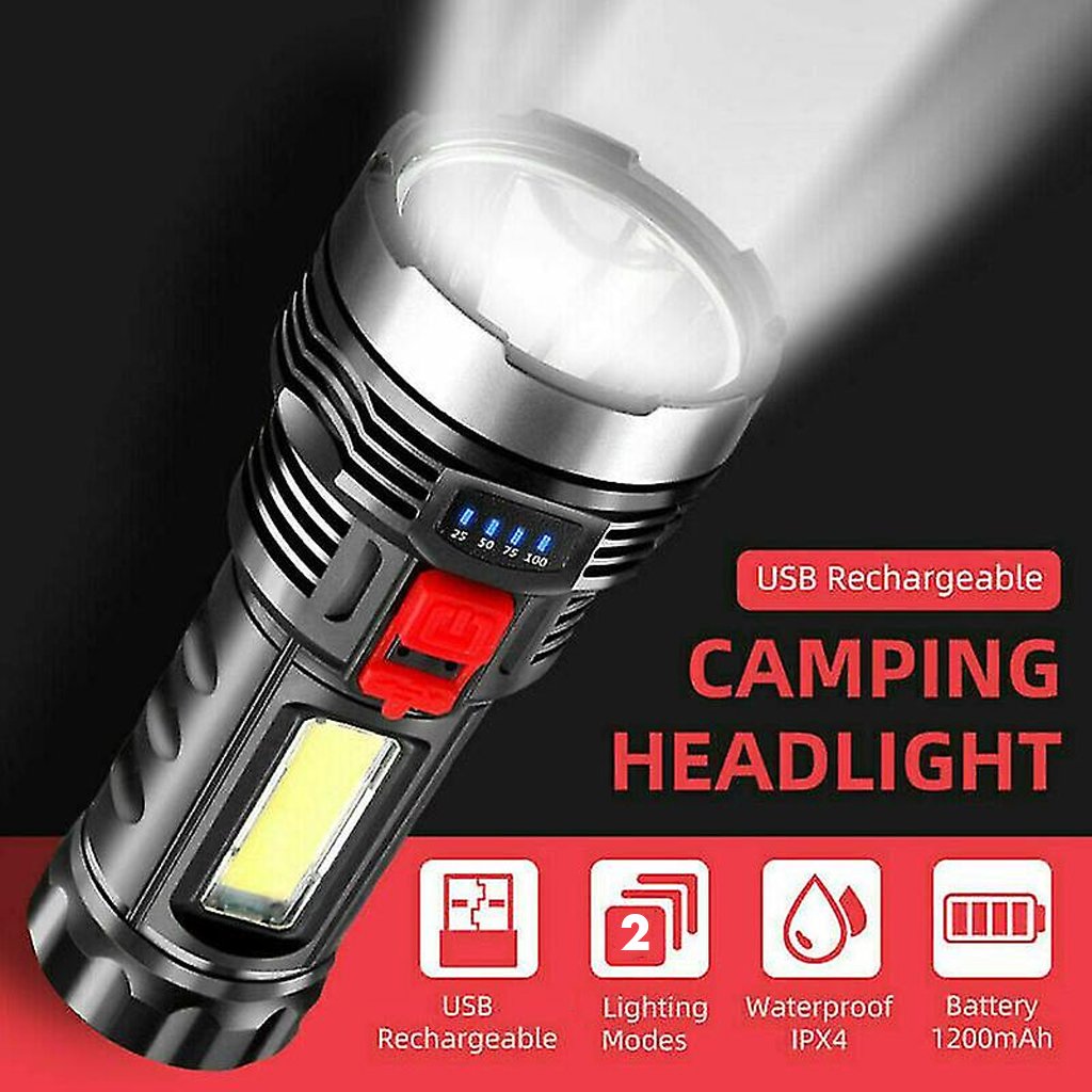 ● إضاءة قوية/ضعيفة//جانبية. يمكن استخدامه كمصباح يدوي أمامي أو إضاءة جانبية كمصباح طاولة.