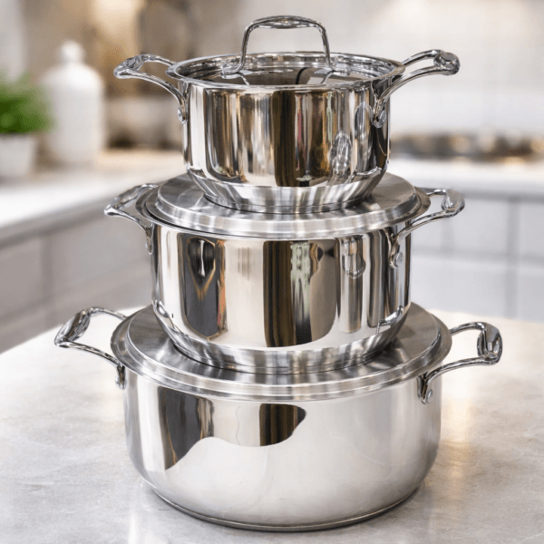 Ensemble casserole 3 pièce INOX 18/10 الأصلي 5-3-2 لتر خلي الطبخ متعة وجودة تدوم سنوات