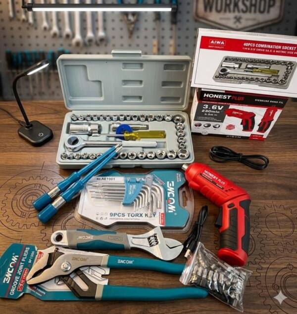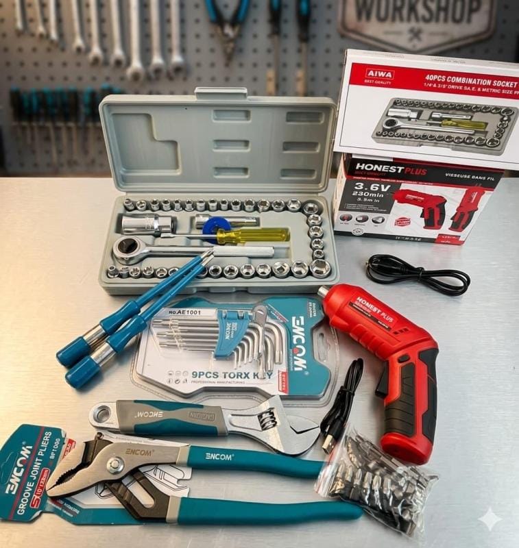 ✅ خامات عالية التحمل: مصنوعة من الفولاذ المقوّى والبلاستيك الصناعي المتين لضمان عمر طويل. ✅ جاهزية دائمة: أنت مستعد لكل شيء؛ من تركيب خزانة ملابس جديدة إلى تغيير بطارية سيارتك. ✅ توفير حقيقي: احصل على 4 مجموعات أدوات احترافية في “عرض واحد” بسعر أقل بكثير من الشراء المنفصل. ✅ تنظيم مثالي: حقيبة منظمة تمنع ضياع القطع وتجعل حملها إلى أي مكان أمراً غاية في السهولة.