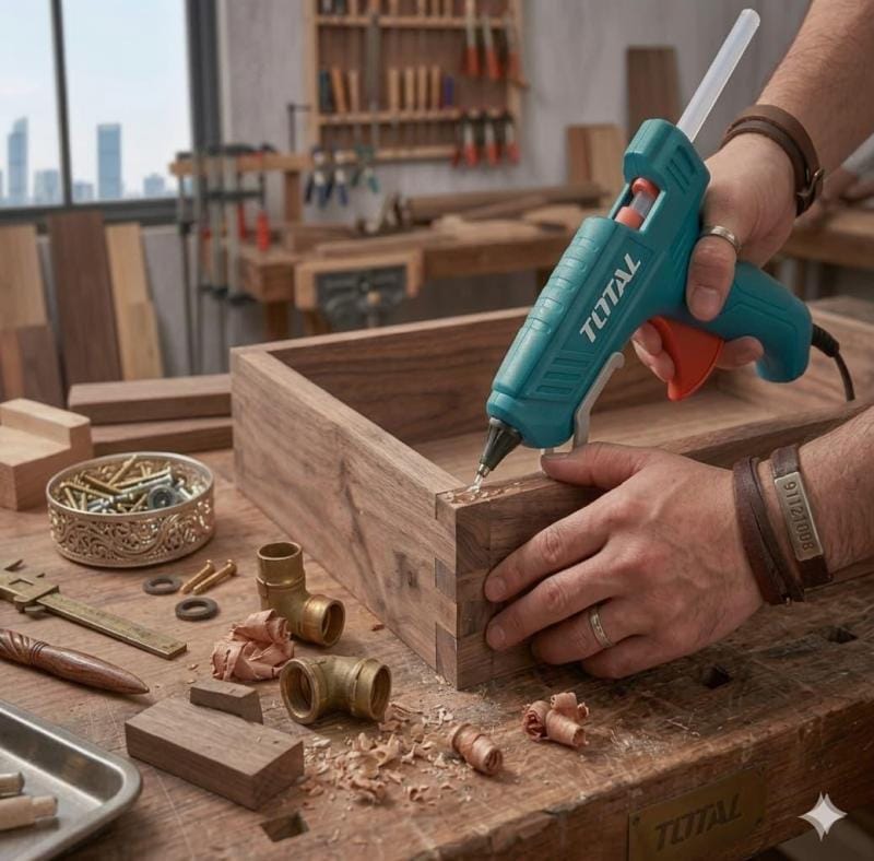 الخلاصة: سواء كنت تعمل على الديكور، النجارة، الحرف اليدوية، أو حتى إصلاح الأثاث؛ فإن مسدس الغراء TOTAL 100W هو الأداة التي تمنحك “اللمسة النهائية” الاحترافية التي تبحث عنها.