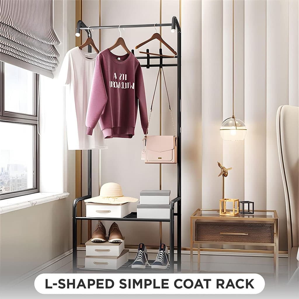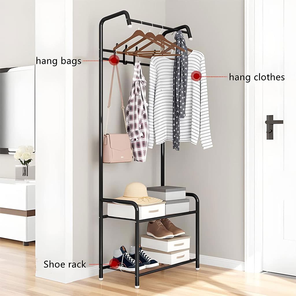 🧥🖤 علاقة ملابس متعددة الاستخدامات – تنظيم أنيق وعصري للمساحات العصرية!