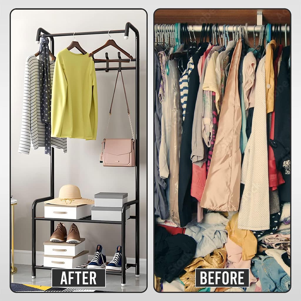 علّق المعاطف، القبعات، المظلات، الأحذية وغيرها بطريقة منظمة وأنيقة، مع إمكانية عرض الملابس الفاخرة بشكل جذّاب. - 📦 مثالية للمساحات الصغيرة والكبيرة: