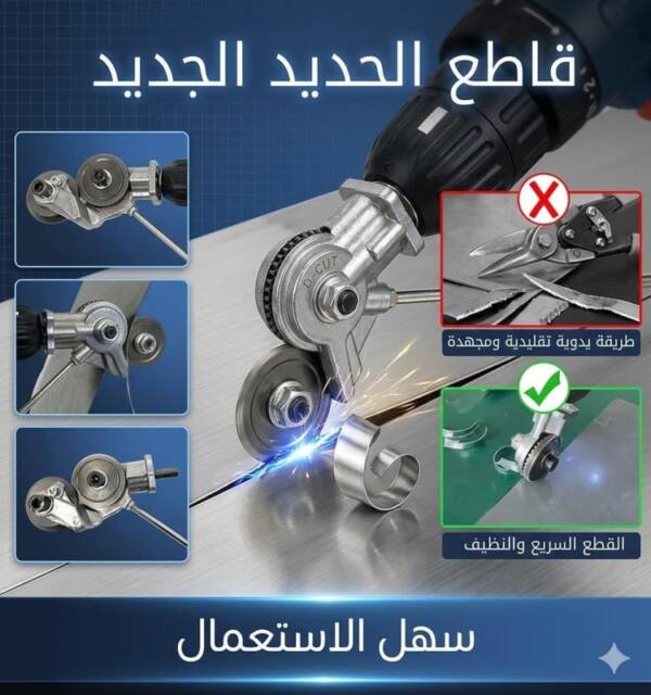 هل ما زلت تعاني مع المقصات اليدوية المتعبة أو الأدوات الثقيلة لقص صفائح المعدن؟ نقدم لك رأس قاطع صفائح الحديد الذكي، الابتكار الذي سيجعل أعمال الحدادة والترميم أسرع وأسهل بمرتين! لا ترهق يديك بالمقص اليدوي بعد اليوم. بقطعة واحدة بسيطة، يمكنك تطوير أدواتك الحالية لتعمل كآلات صناعية متطورة.!