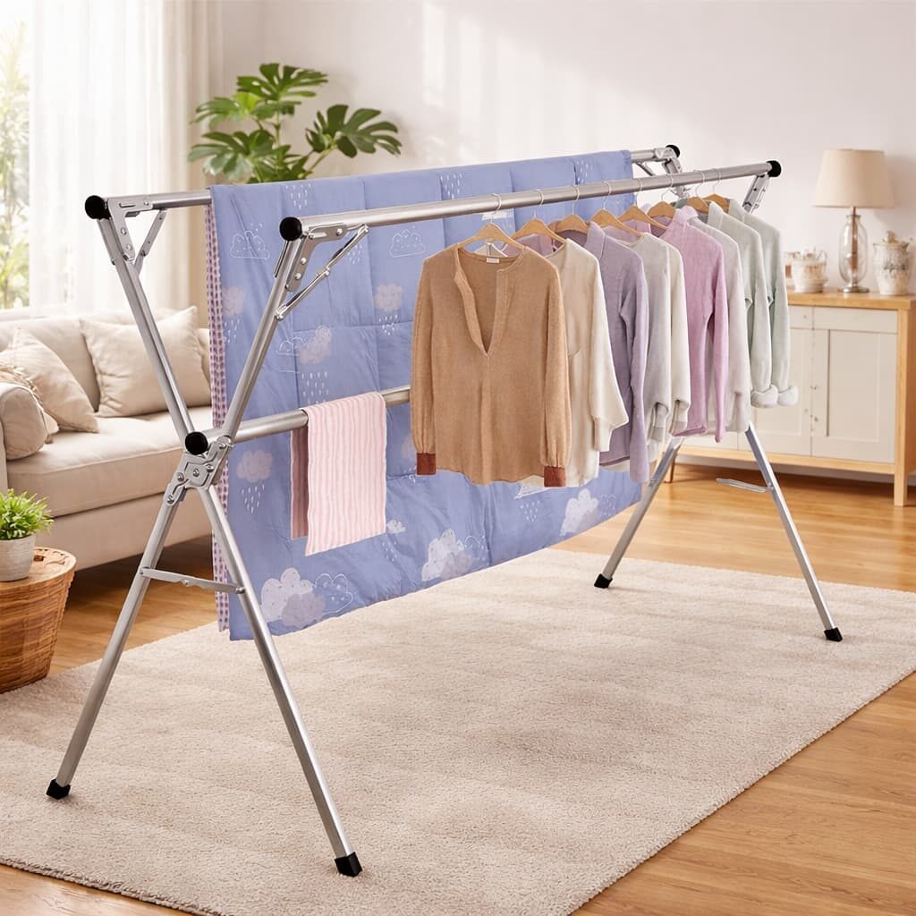 تمت إضافة قضيب دعم في المنتصف لزيادة الثبات أثناء تعليق الملابس، حتى في الأجواء العاصفة.