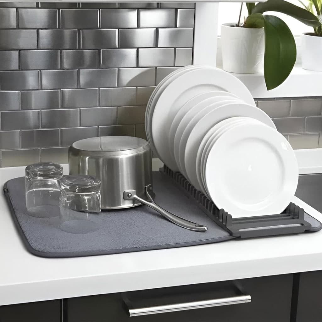 اجعل مطبخك أكثر ترتيبًا ونظافة مع مصفاة الأواني المصنوعة من ميكروفايبر عالية الجودة وسريعة الجفاف، الحل المثالي لتجفيف الصحون، الكؤوس وأدوات المطبخ دون فوضى أو إشغال مساحة كبيرة.